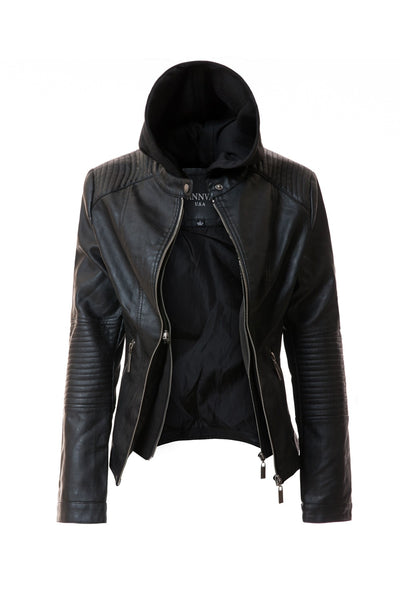 Women's Hood Vegan Leather Jacket
