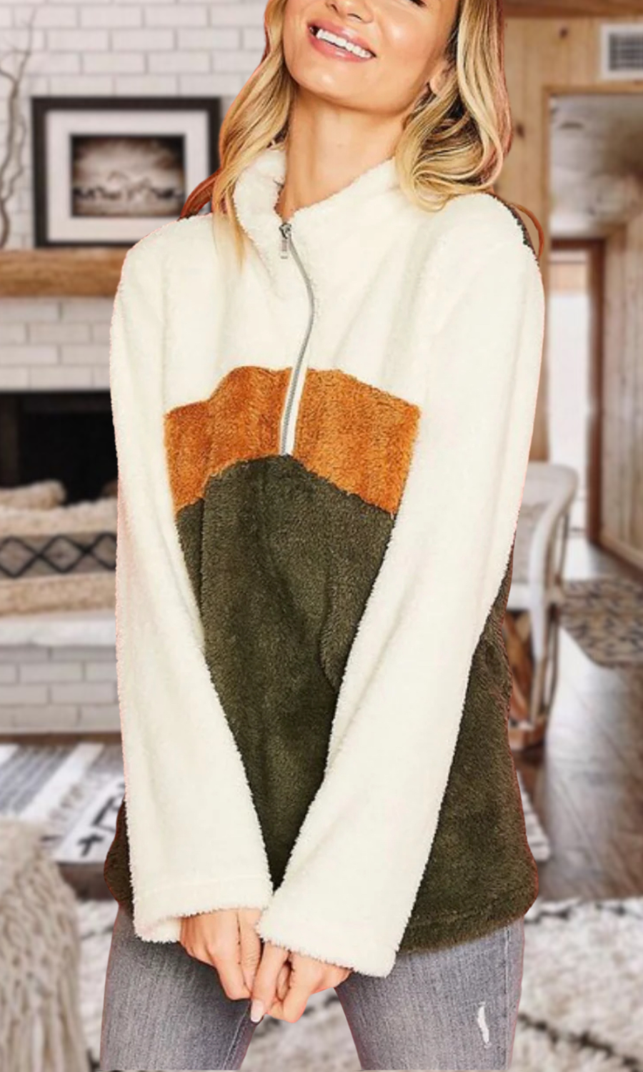 Cosy up or show it off! You’ll love this super soft color block Sherpa!