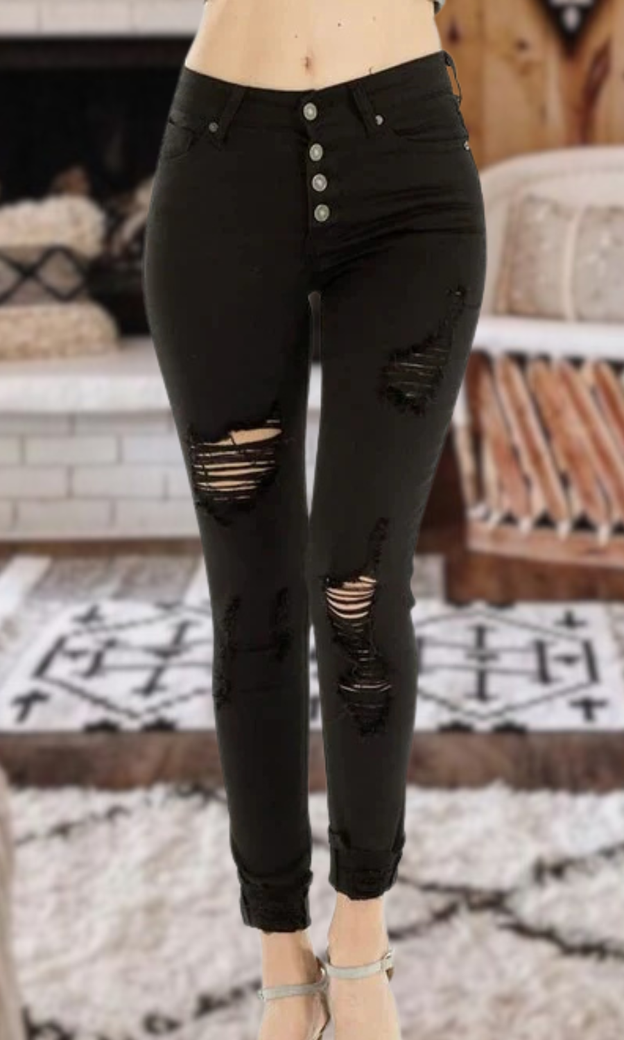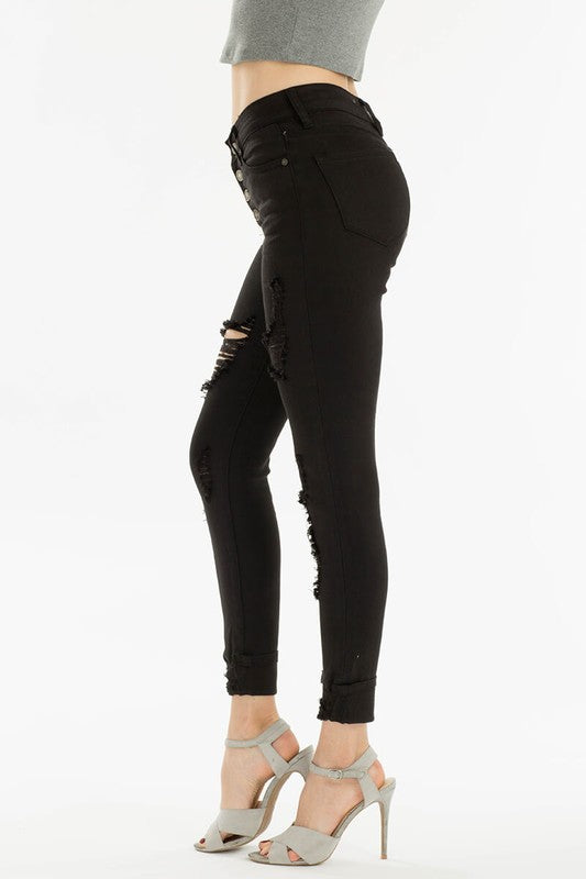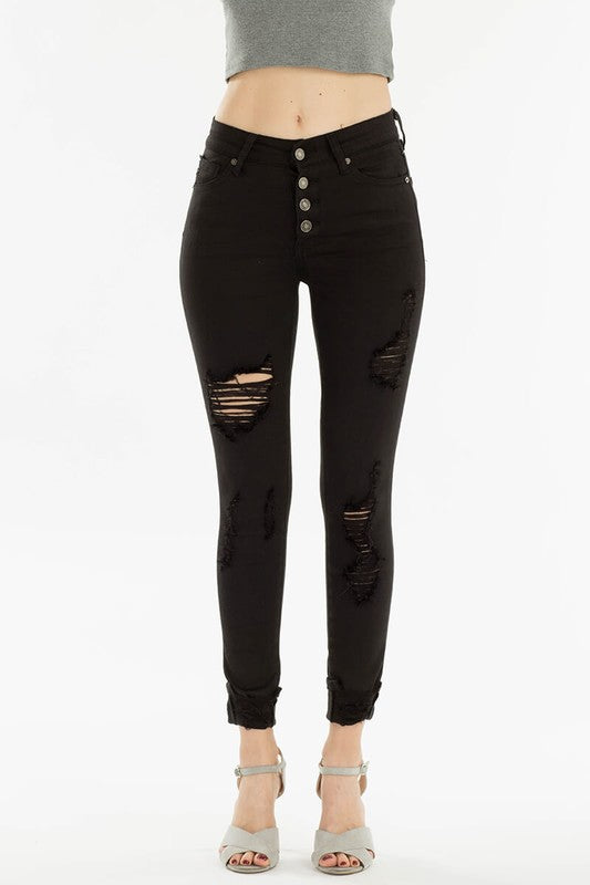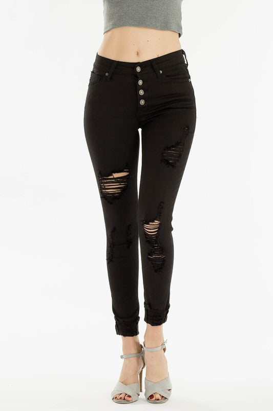 High Rise Distressed Skinny’s - Black