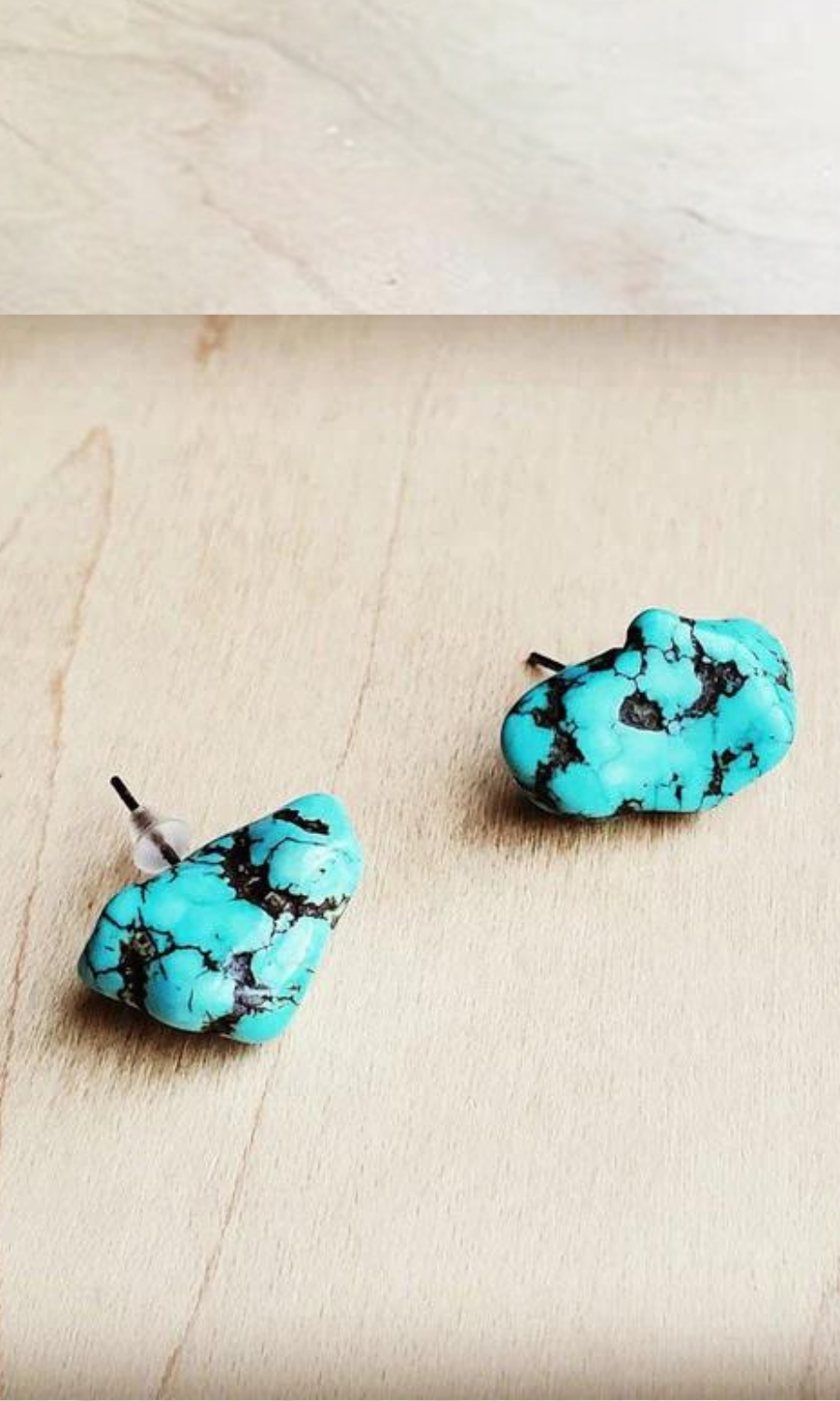 Dyed Blue Turquoise Beaded Stud Earrings are the perfect complement to your boho style