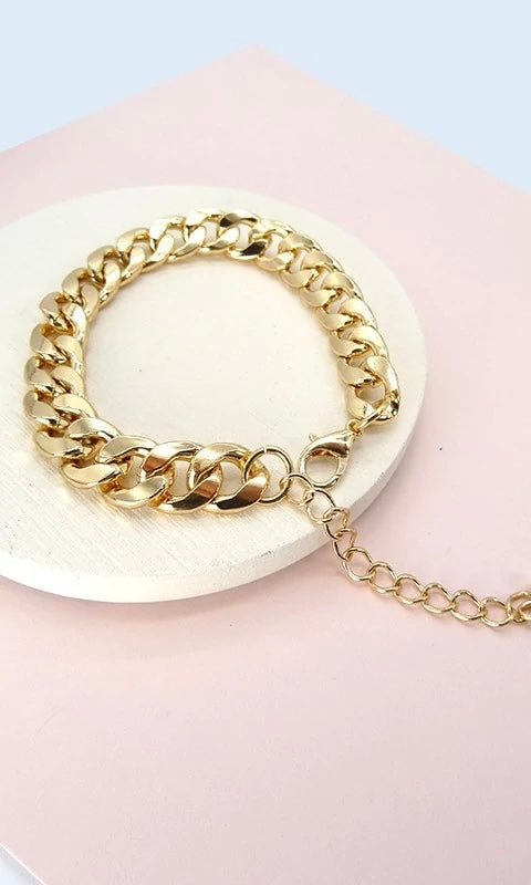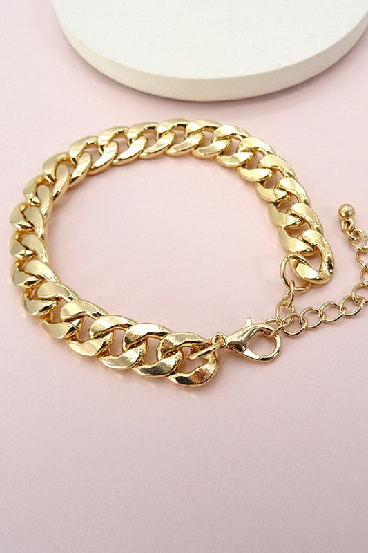 This chain bracelet features large, elegantly twisted links. It perfectly hugs around the wrist and is stunning worn solo or with other, thinner bracelets.