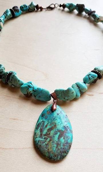 There is no such thing as having too many statement pieces of jewelry. These versatile pieces can completely change the appearance of an outfit giving you twice as many looks in the same closet. If you're looking to expand your collection of statement jewelry, or you're simply looking for a necklace to complete your outfit, look no further than this gorgeous turquoise necklace by the Jewelry Junkie
