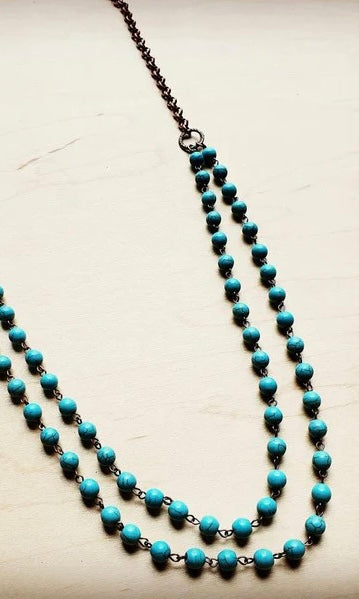 Turquoise is an essential for anyone with a boho chic style. This Handmade, turquoise necklace features an 8mm beaded turquoise chain.