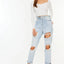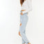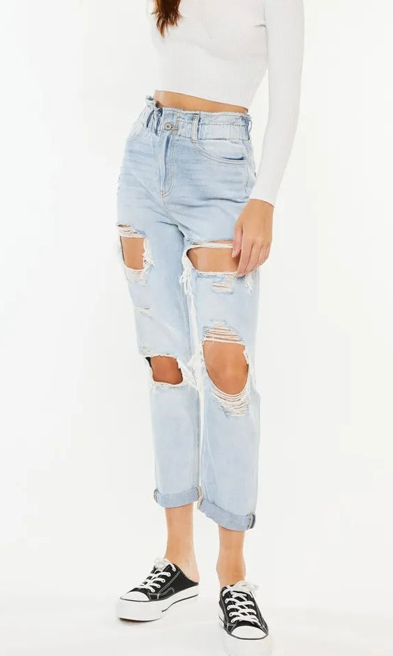 "Open Pack Paperbag Mom Jeans" is a unique and trendy style of jeans featuring an open pack design with a paperbag waist and a relaxed fit through the hips and thighs. The paperbag waist adds a chic and fashion-forward touch to the classic mom jeans silhouette. Perfect for creating a laid-back yet stylish look, these jeans offer a modern twist on a vintage-inspired design.