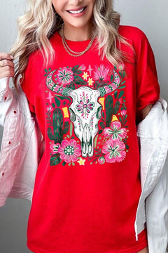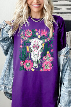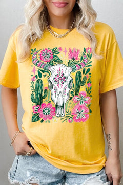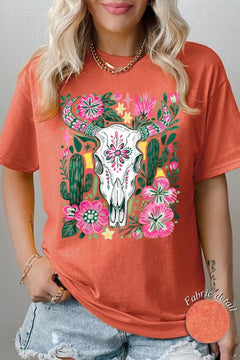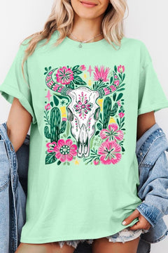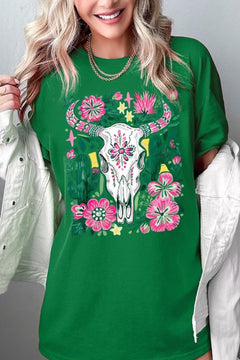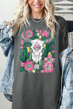 Western Floral Cow Skull Graphic Heavy Cotton Tee